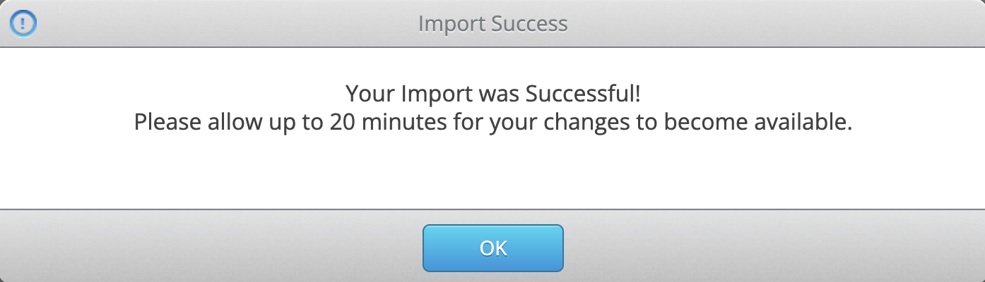 That’s it! You should now receive an Import Success message. Click OK to dismiss it.