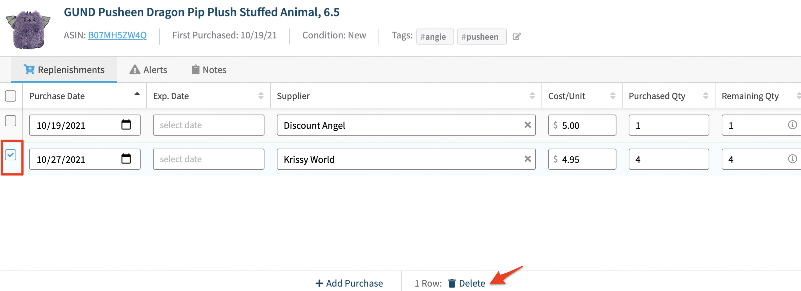 You'll then be able to enter the purchase details and quantity of the item you'd like to add.